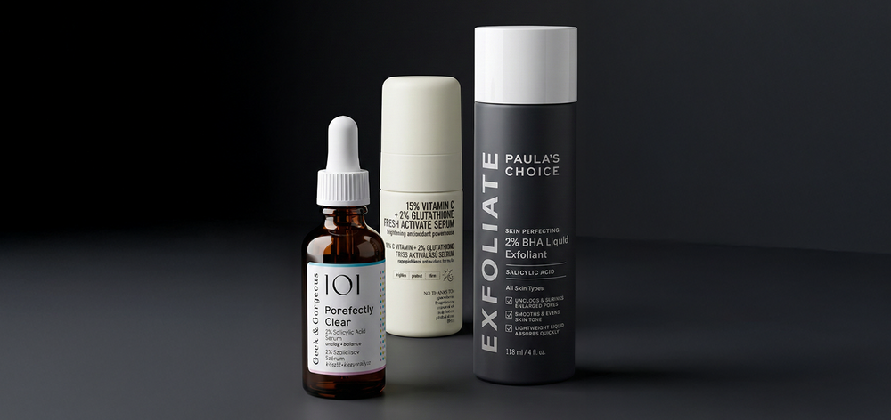 Entdecke kraftvolle Peelings und Glow-Essentials von Geek & Gorgeous, Transparent Lab und Paula’s Choice, die deine Haut verfeinern, regnerieren und ihr neue Strahlkraft schenken.